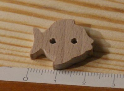 Bouton forme poisson en bois de hetre massif, largeur 22 mm epaisseur 3 à 5 mm