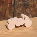 Puzzle composé de 5 pièces, en bois de hetre, motif moto et son motard,